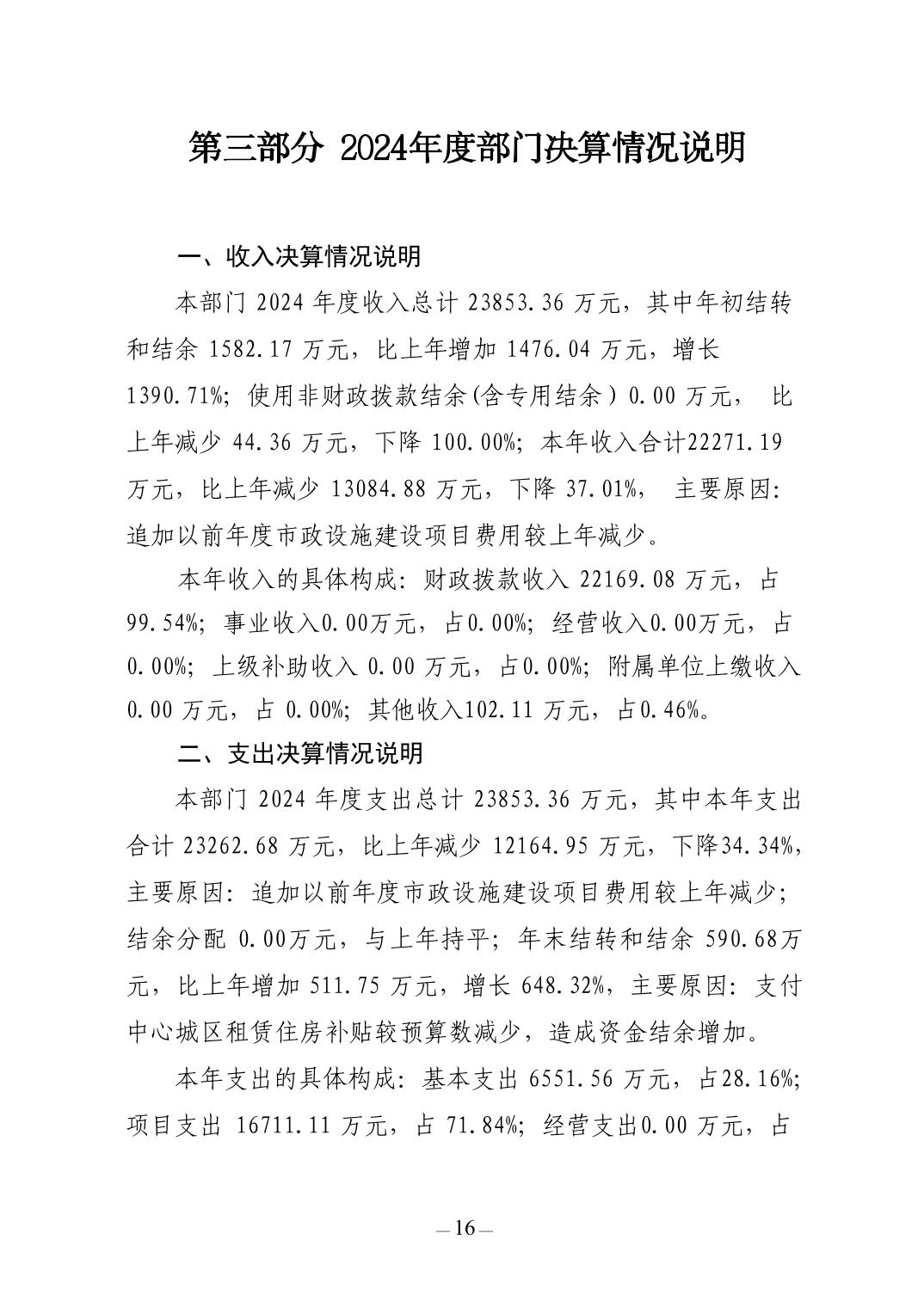 景德镇市住房和城乡建设局2024年度部门决算