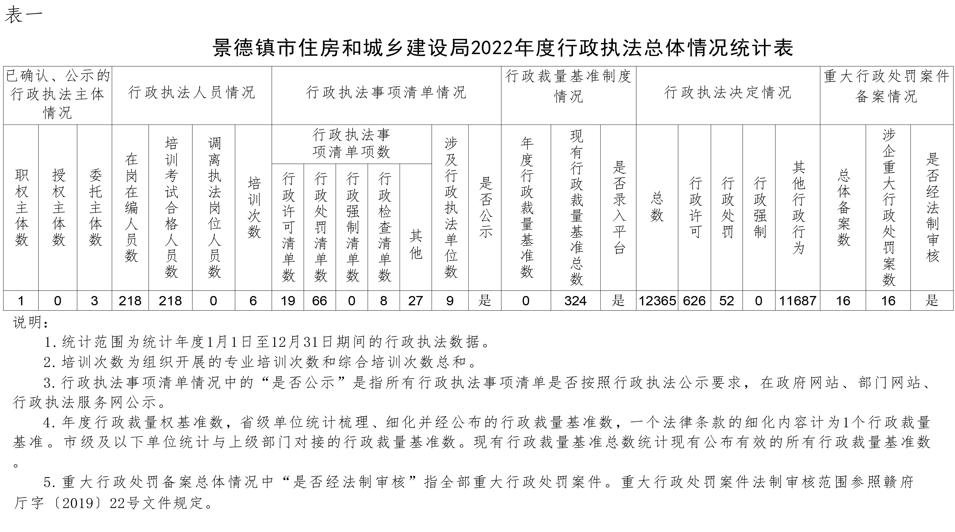 景德镇市住房和城乡建设局2022年度行政执法数据