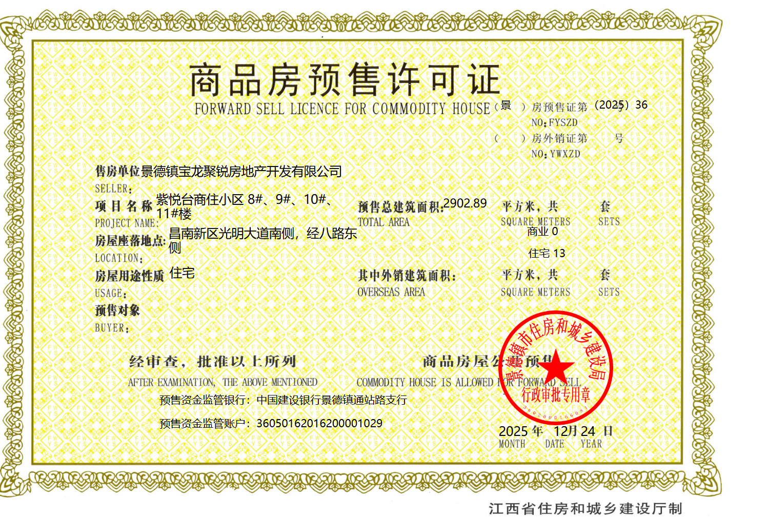 紫悦台2025年第36号预售许可