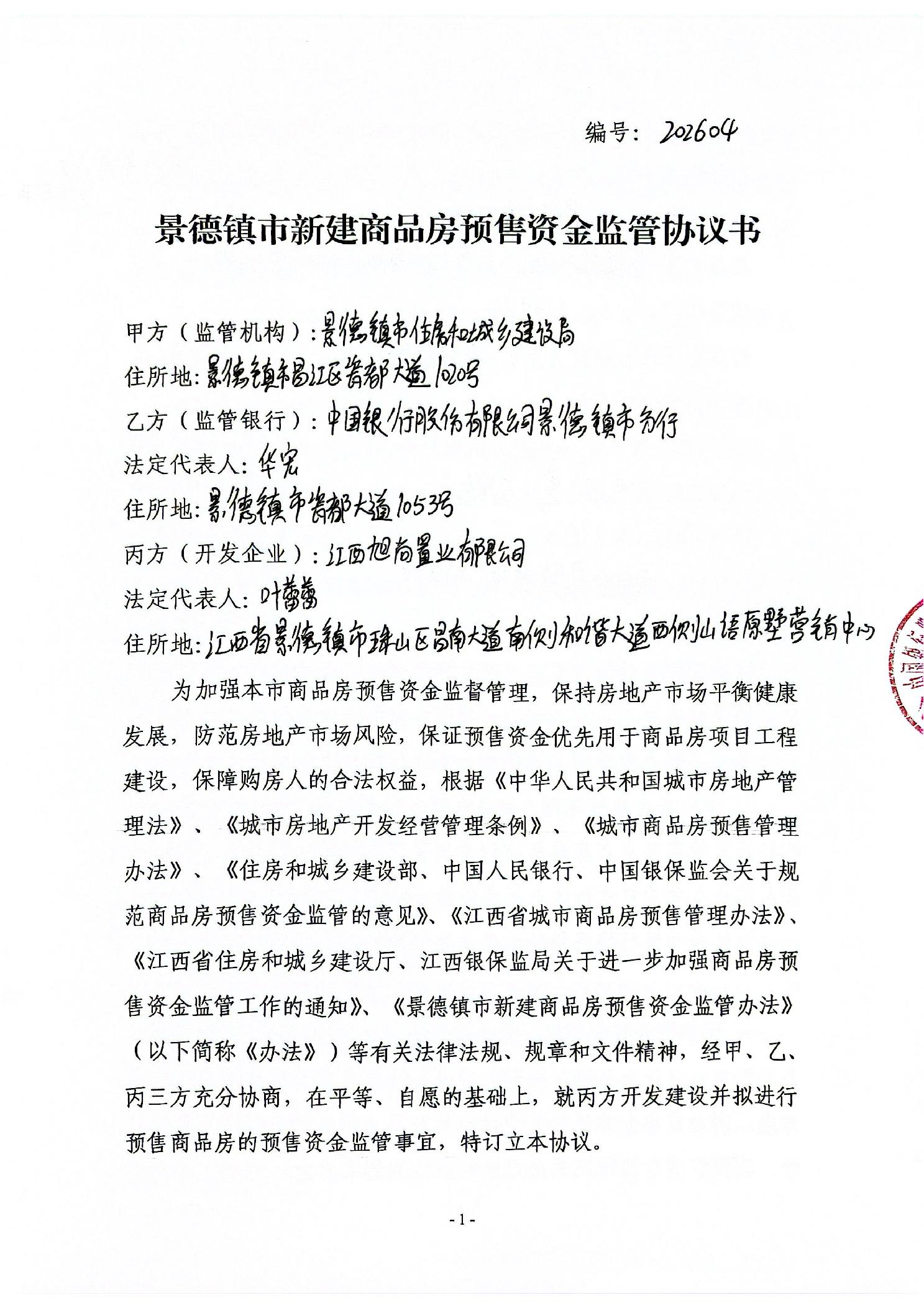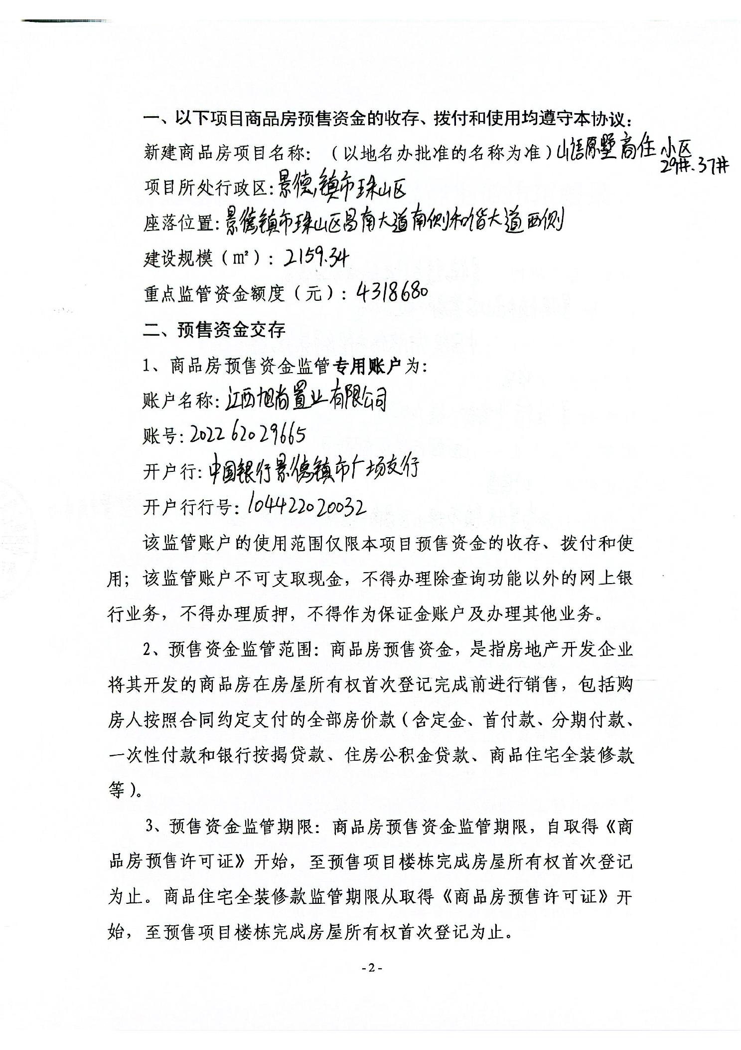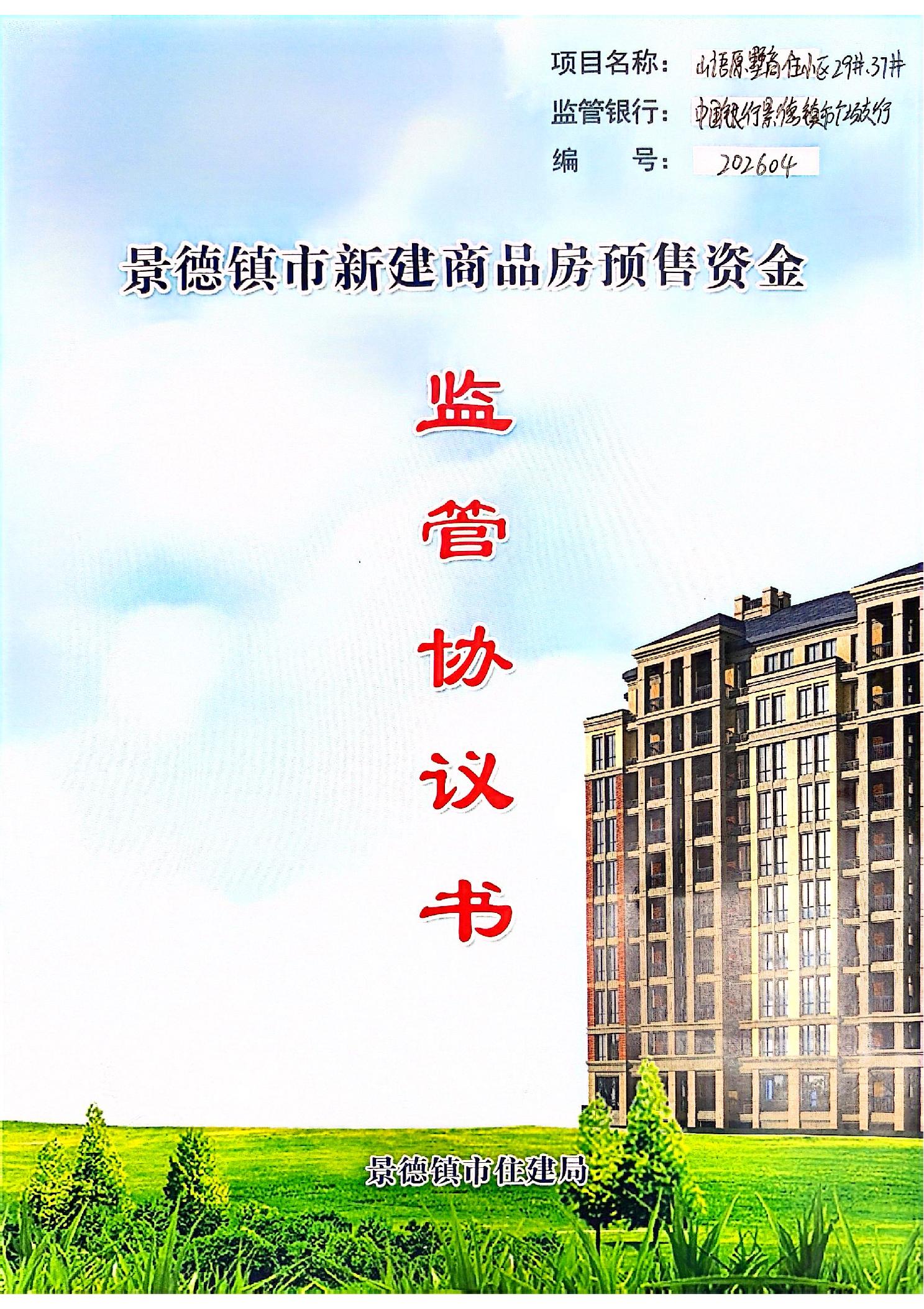 山语原墅商住小区29#.37#楼+中国银行景德镇市广场支行新建商品房预售资金监管协议书