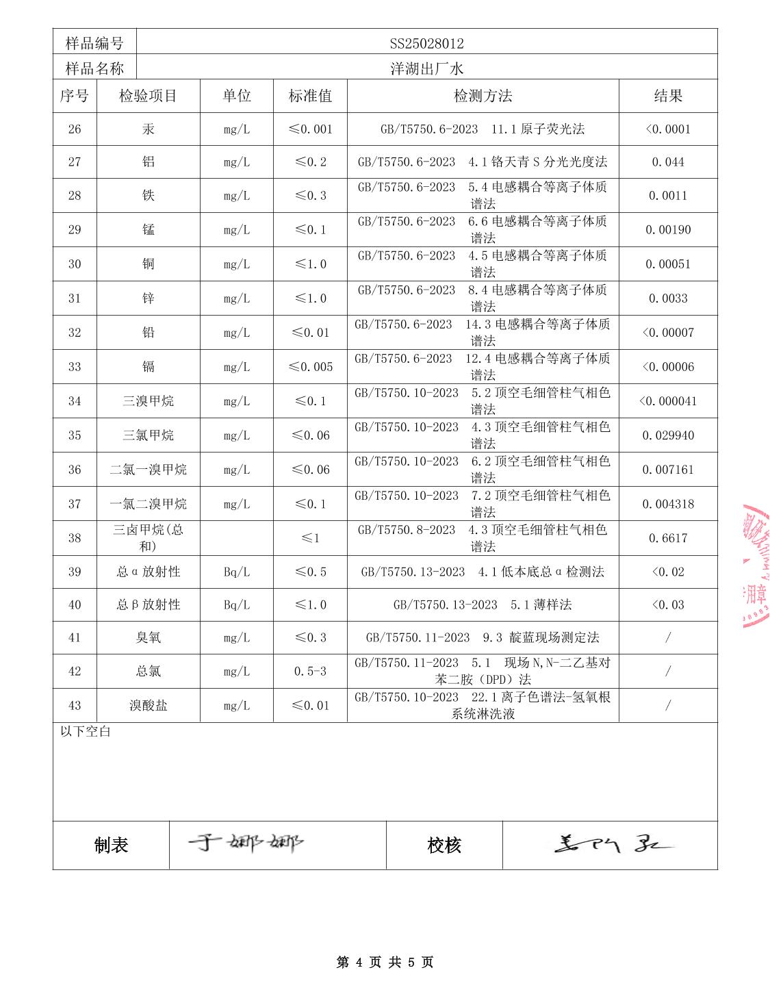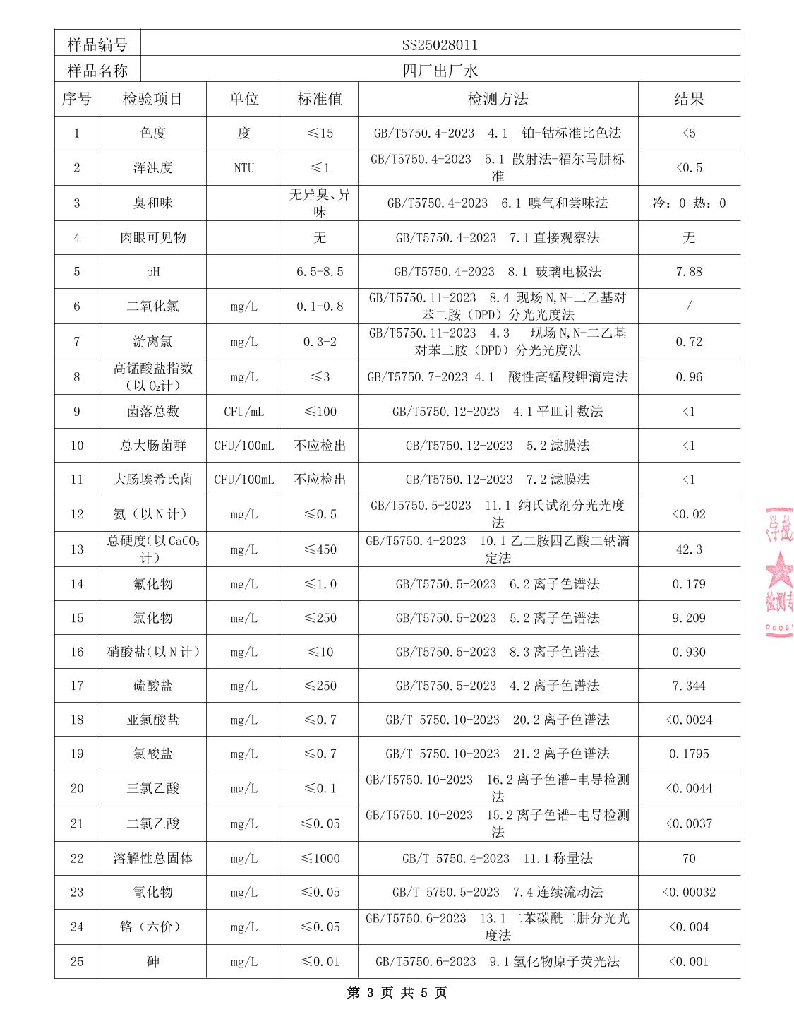 中心城区2025年4月水质检测报告