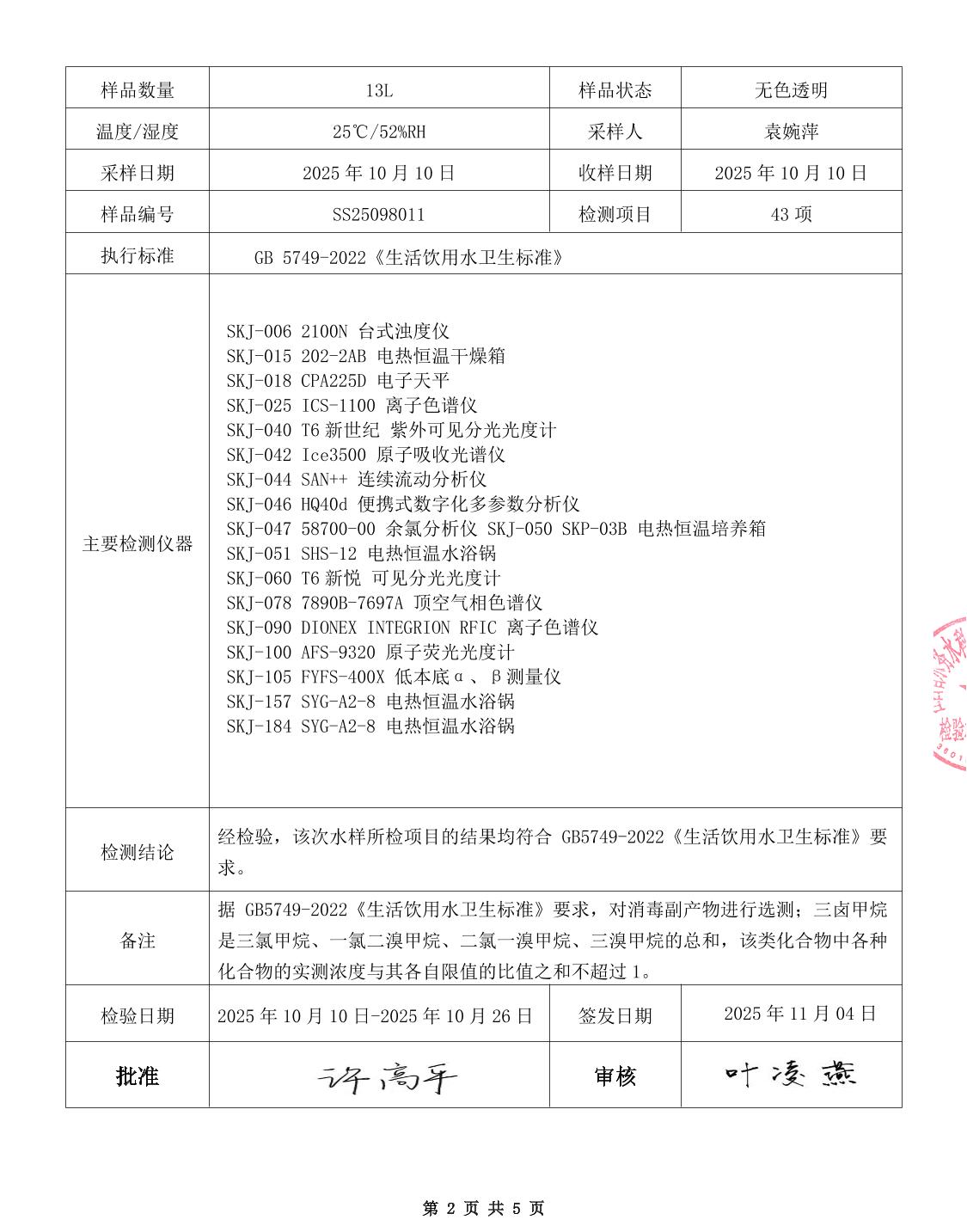 中心城区2025年10月水质检测报告