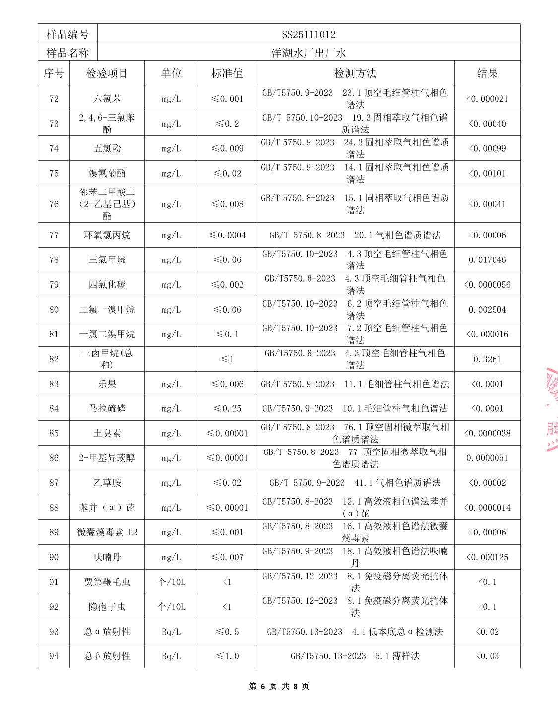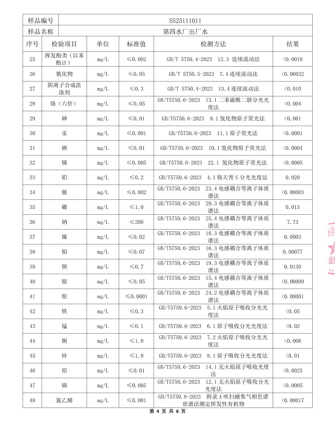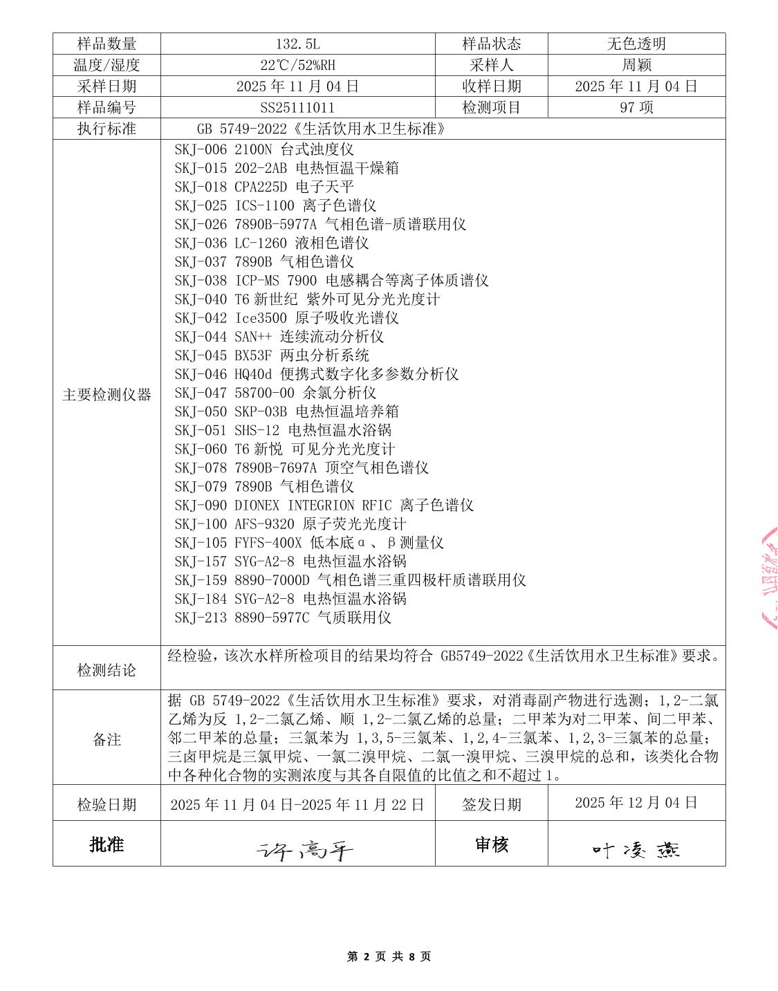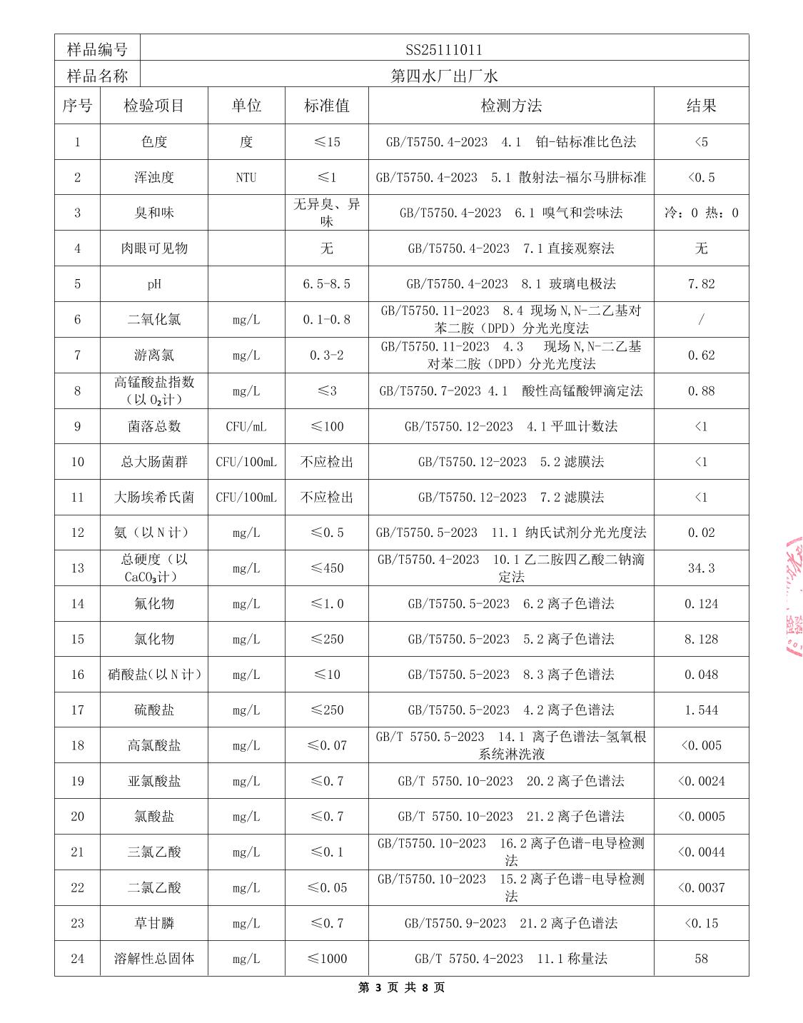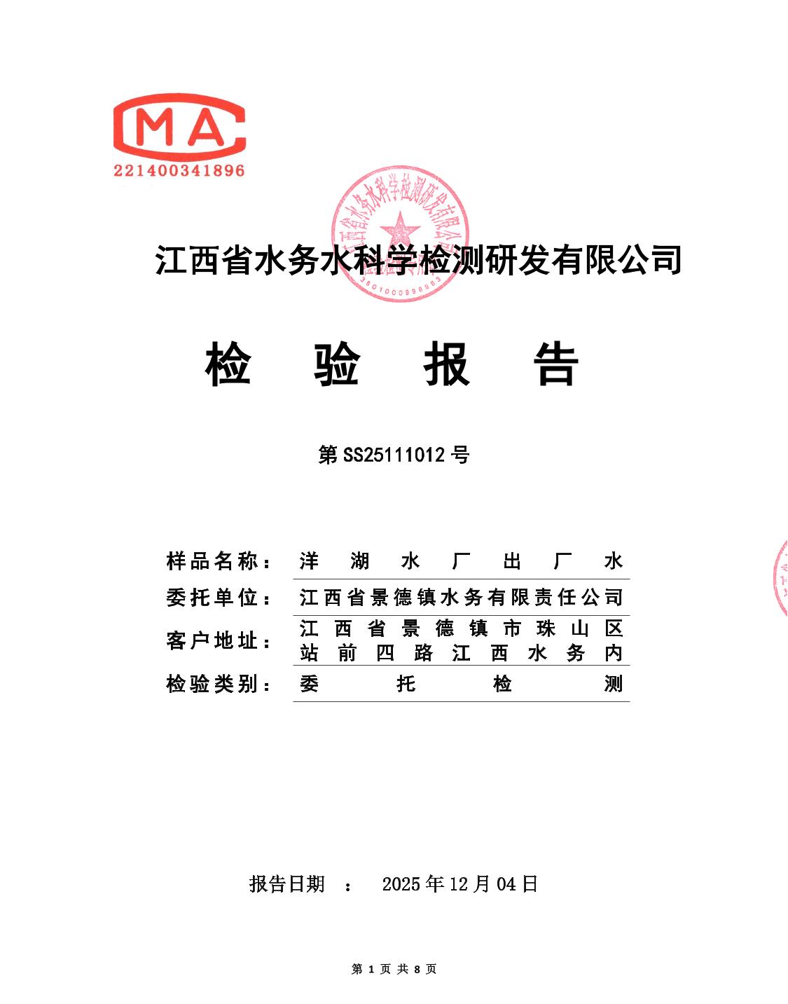 中心城区2025年11月水质检测报告
