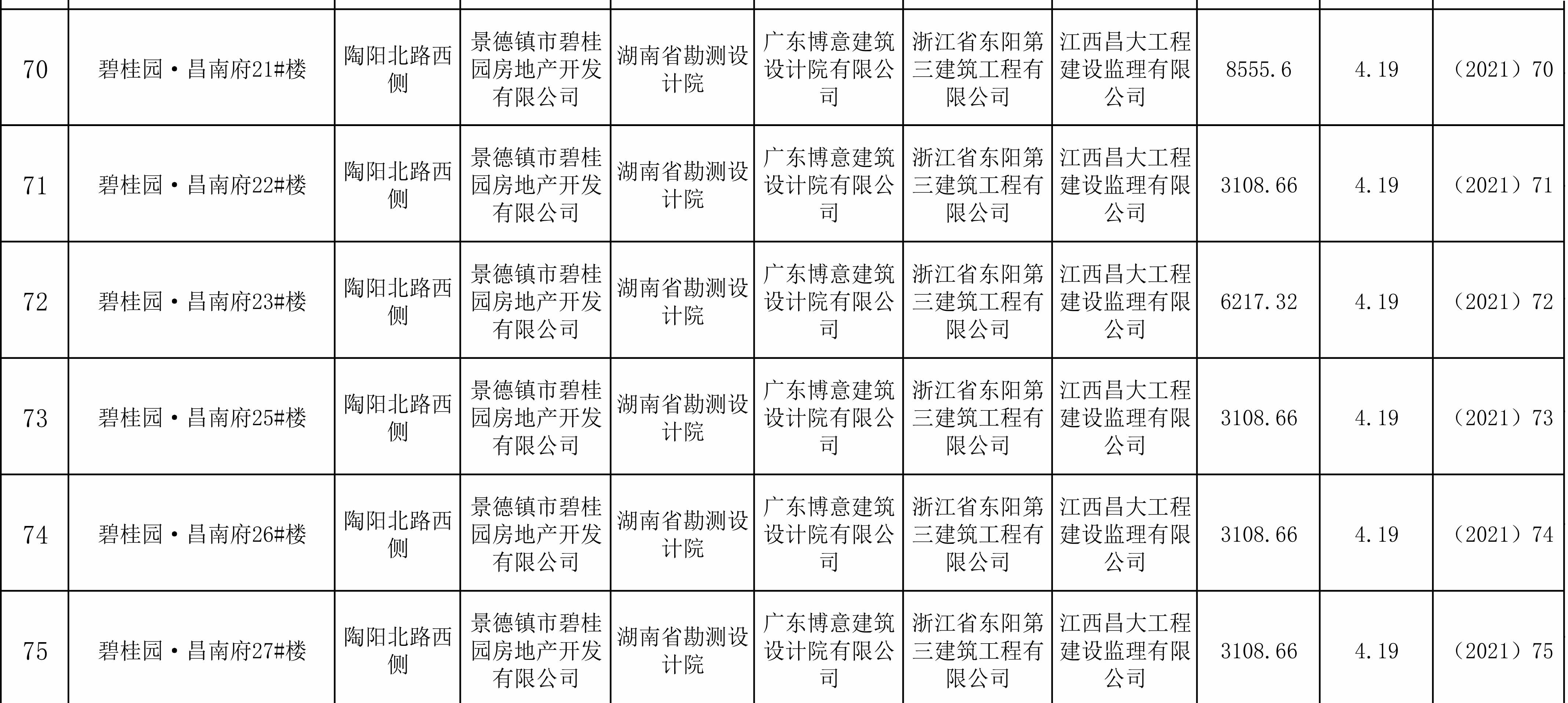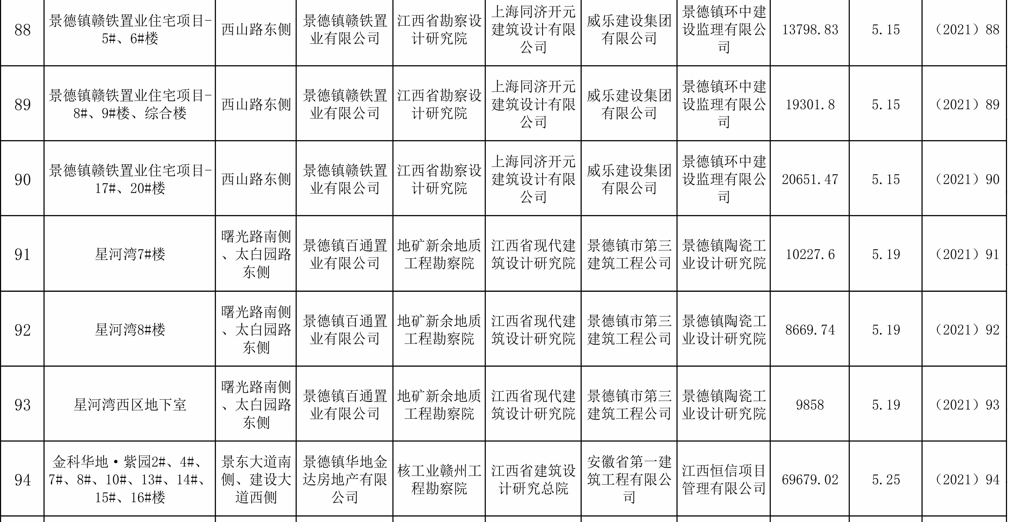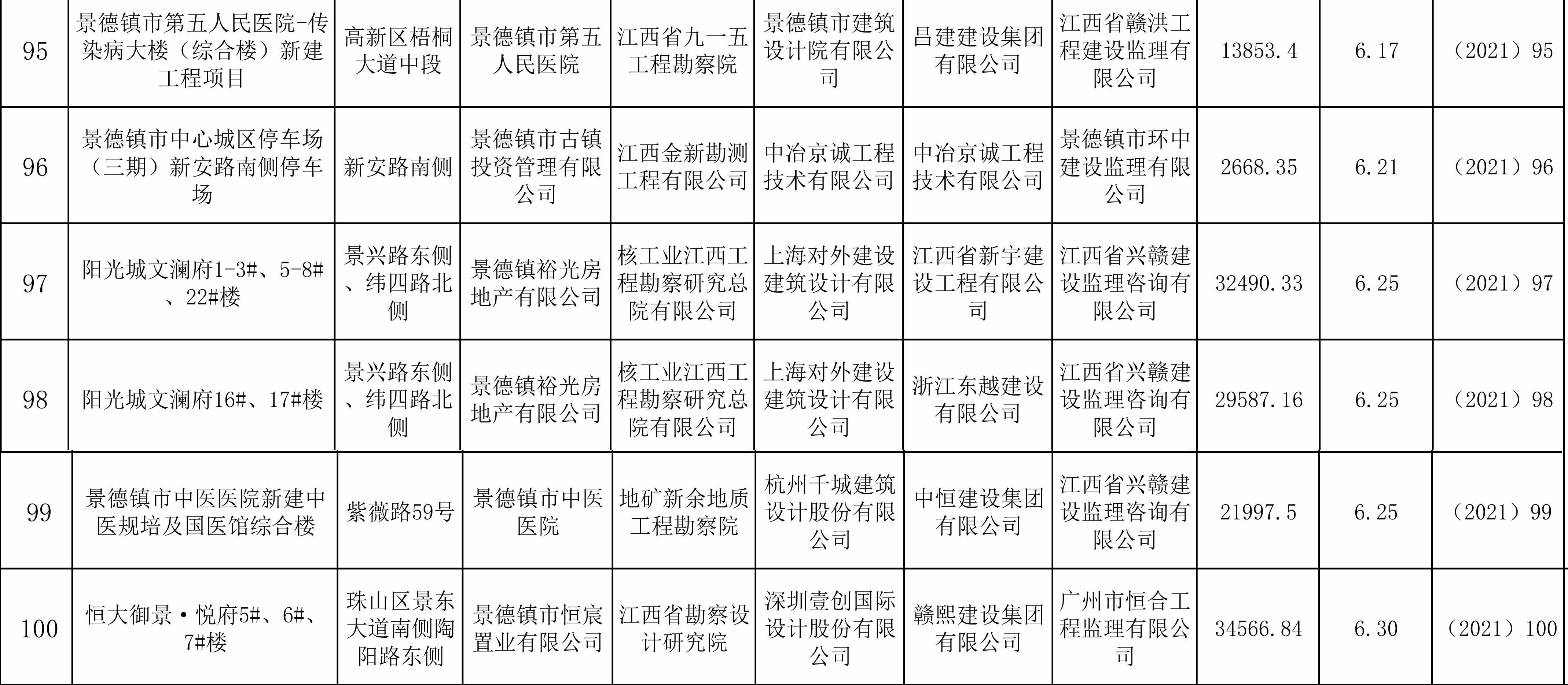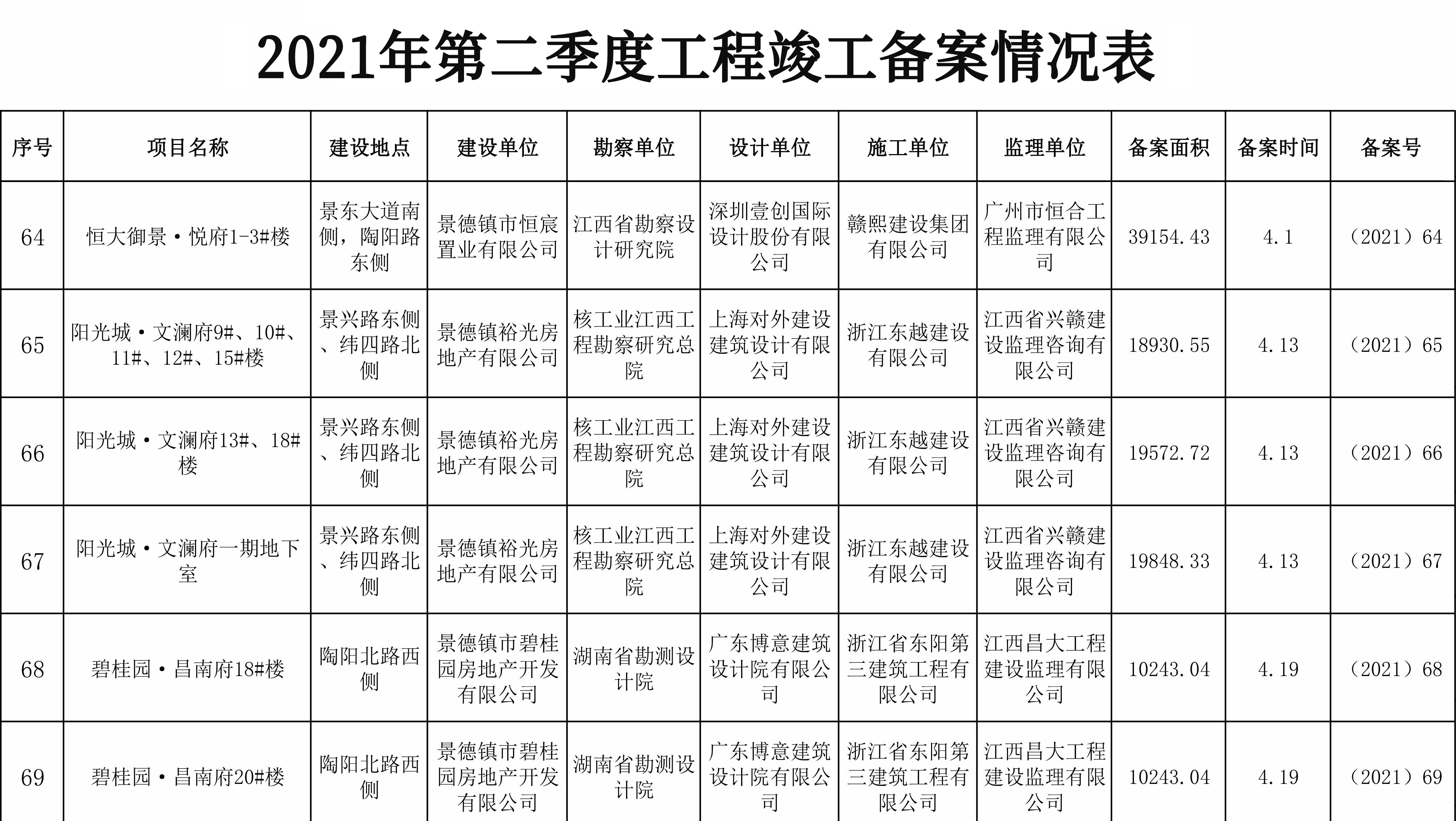 2021年第二季度工程竣工备案情况表