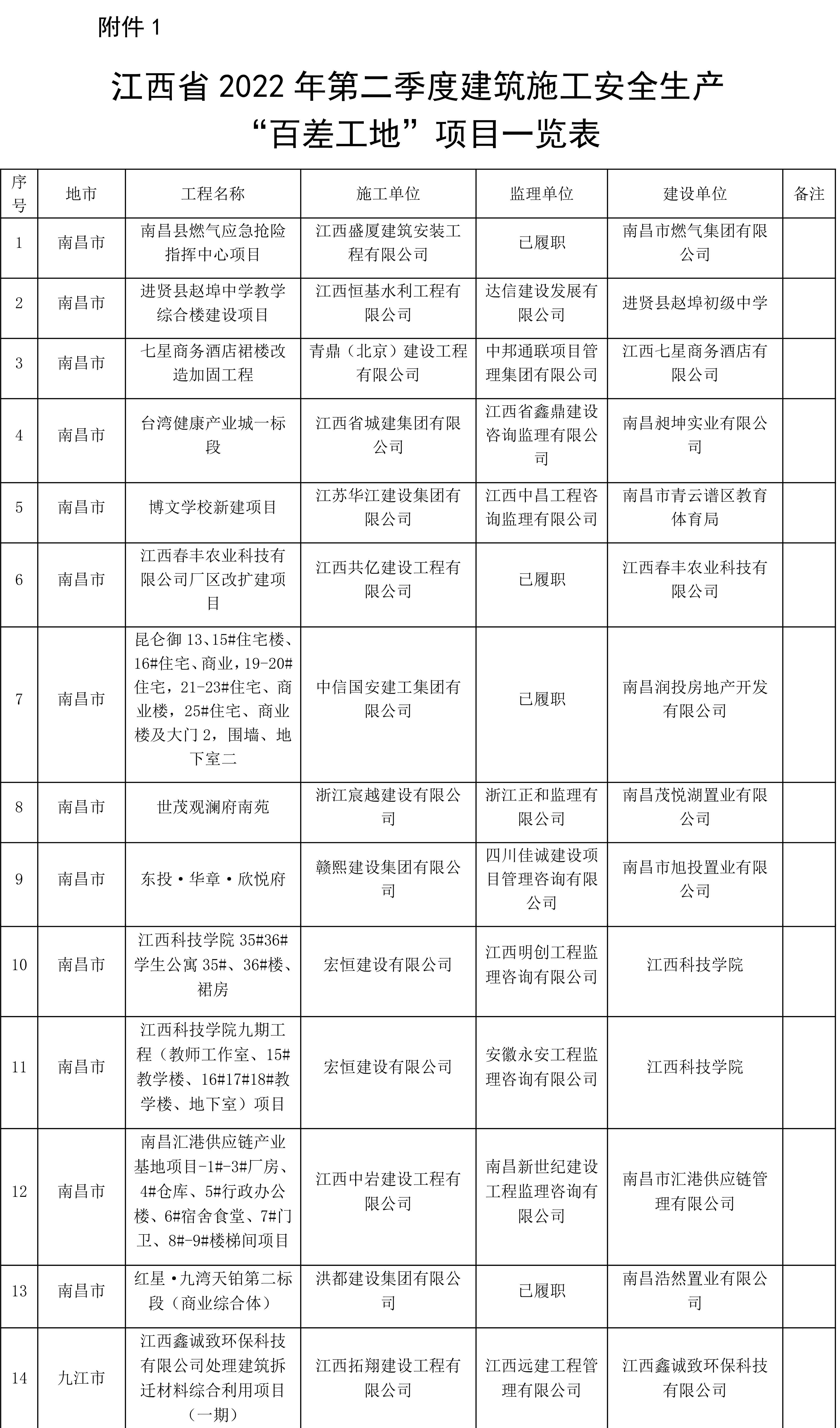 附件:1.江西省2022年第二季度建筑施工安全生产“百差