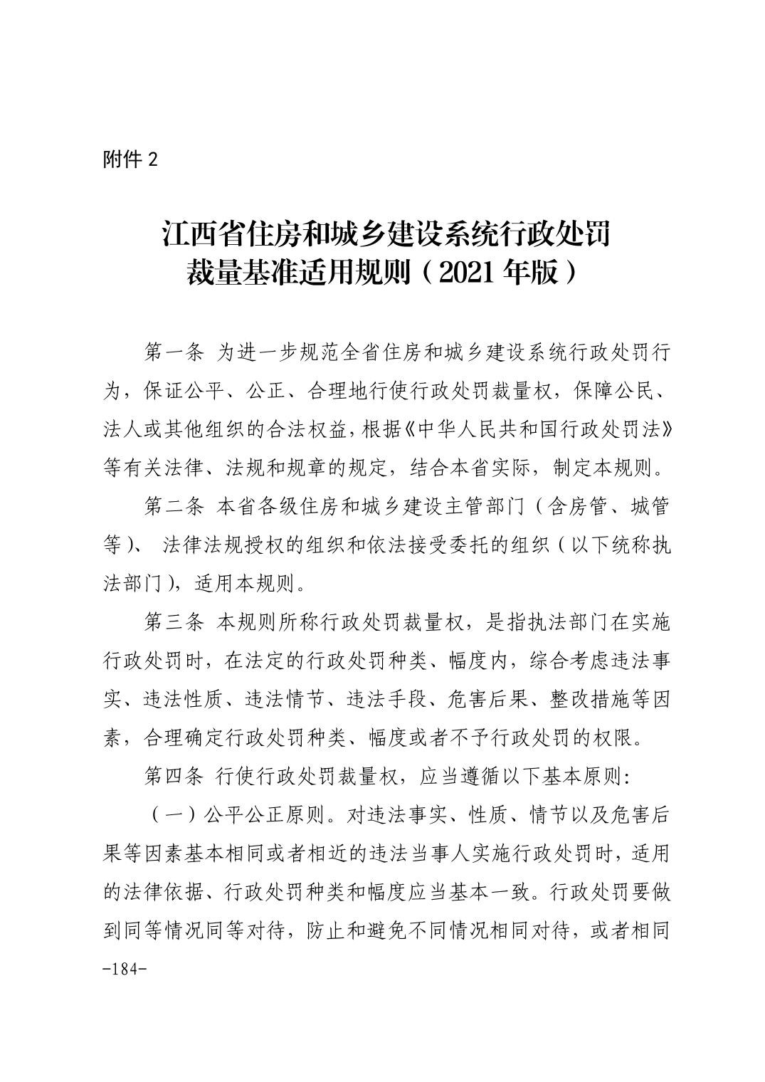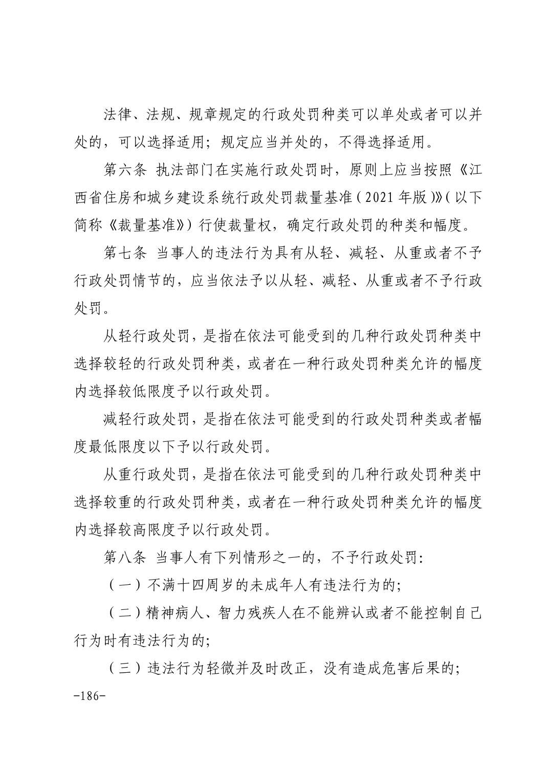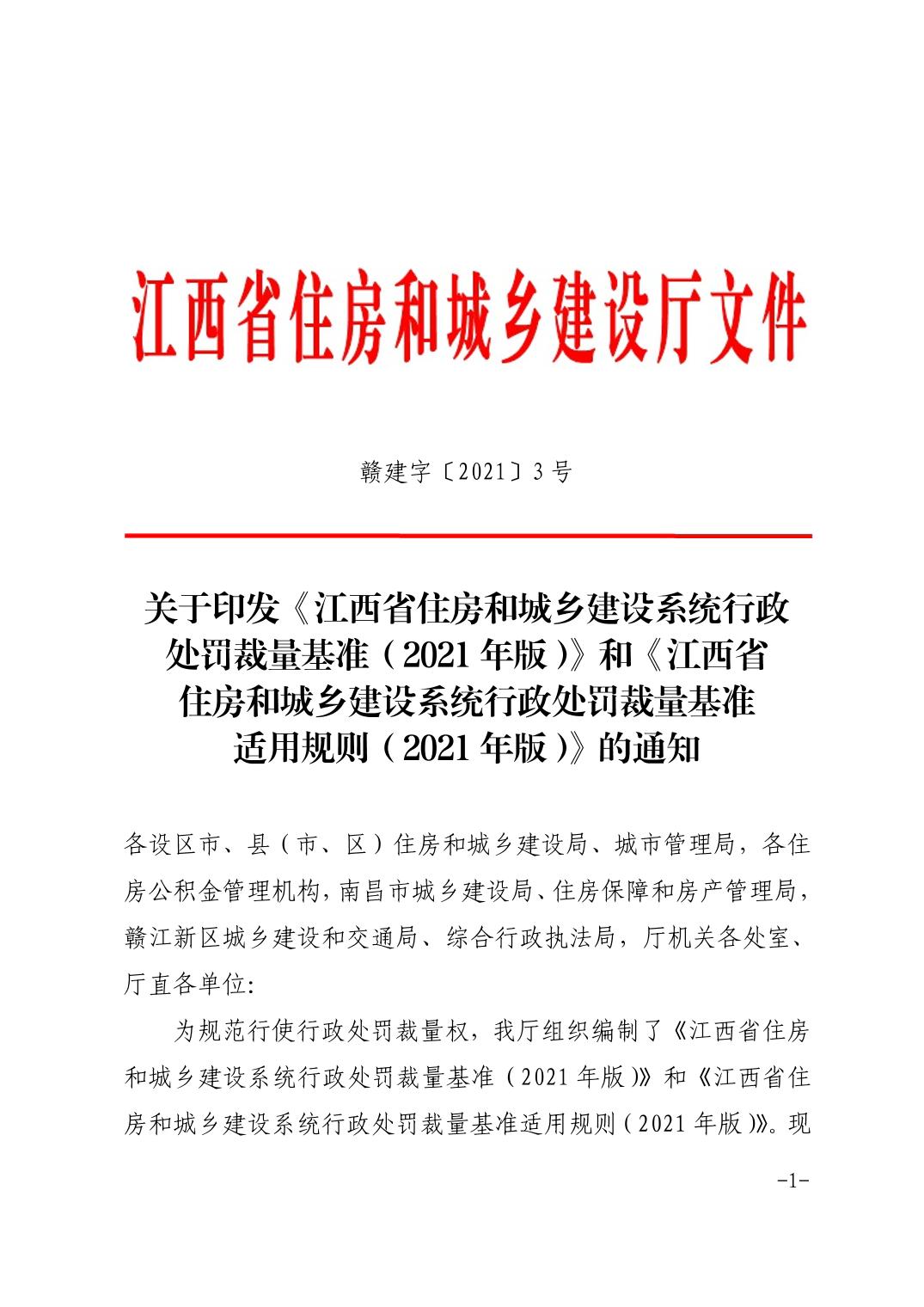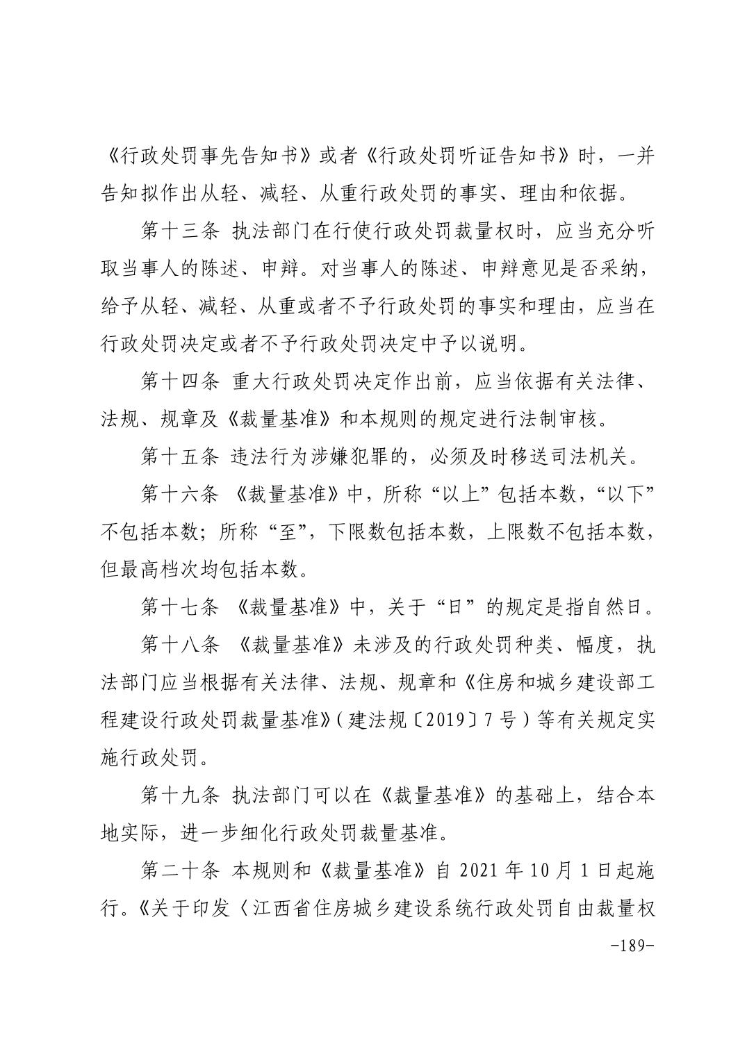 关于印发《江西省住房和城乡建设系统行政处罚裁量基准(2021年版)》等通知