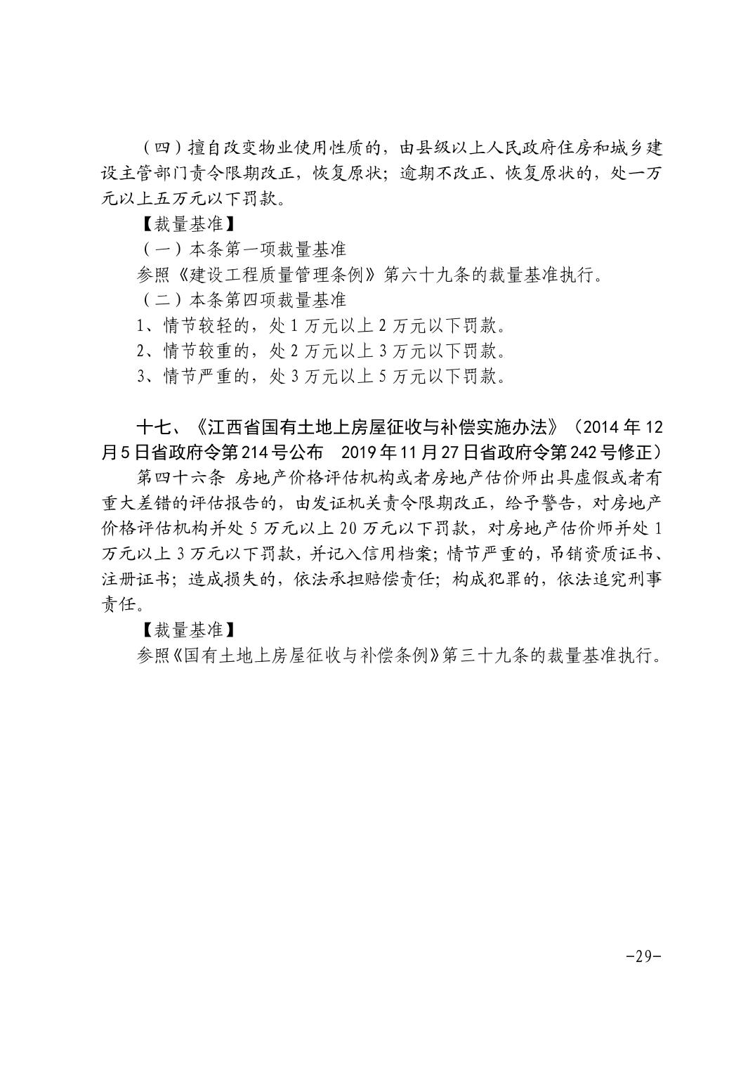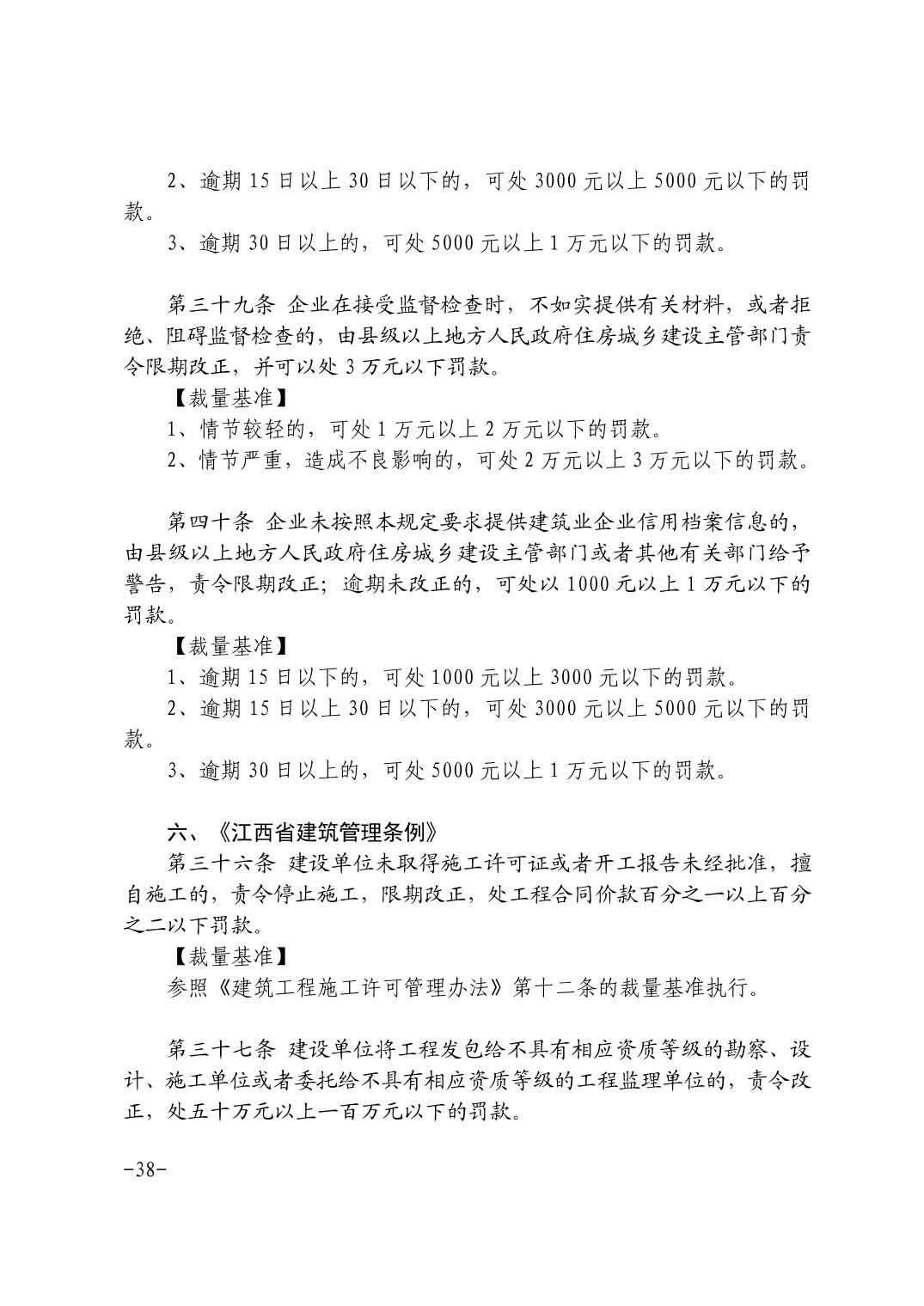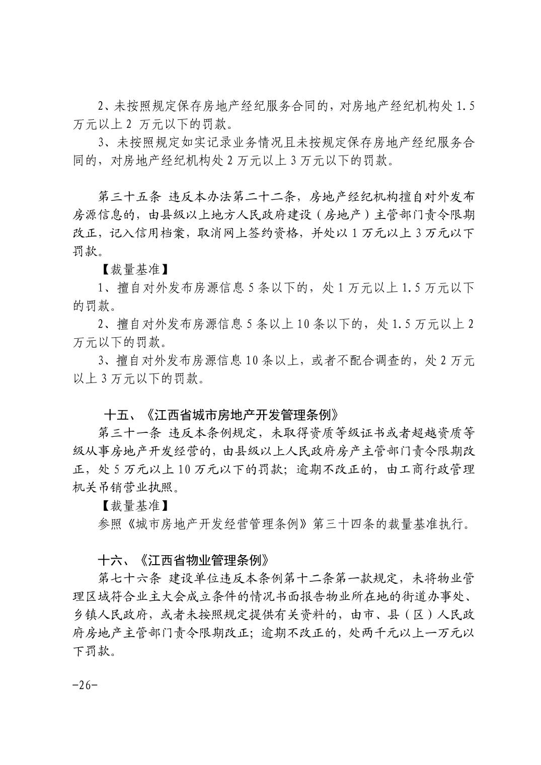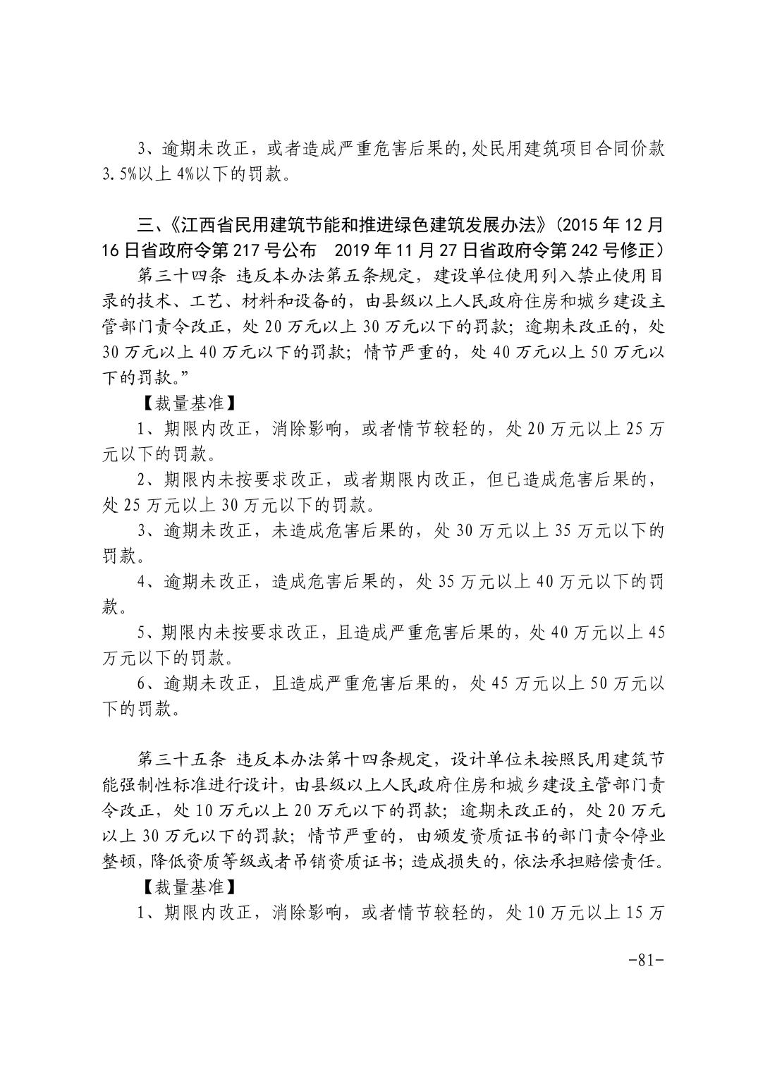 关于印发《江西省住房和城乡建设系统行政处罚裁量基准(2021年版)》等通知