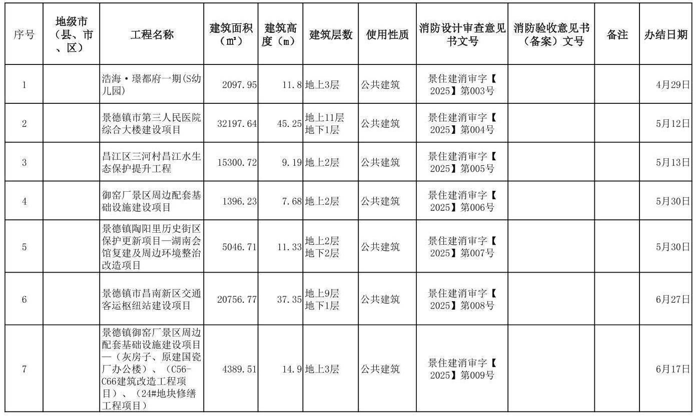景德镇市2025年第二季度建设工程消防设计审查情况统计