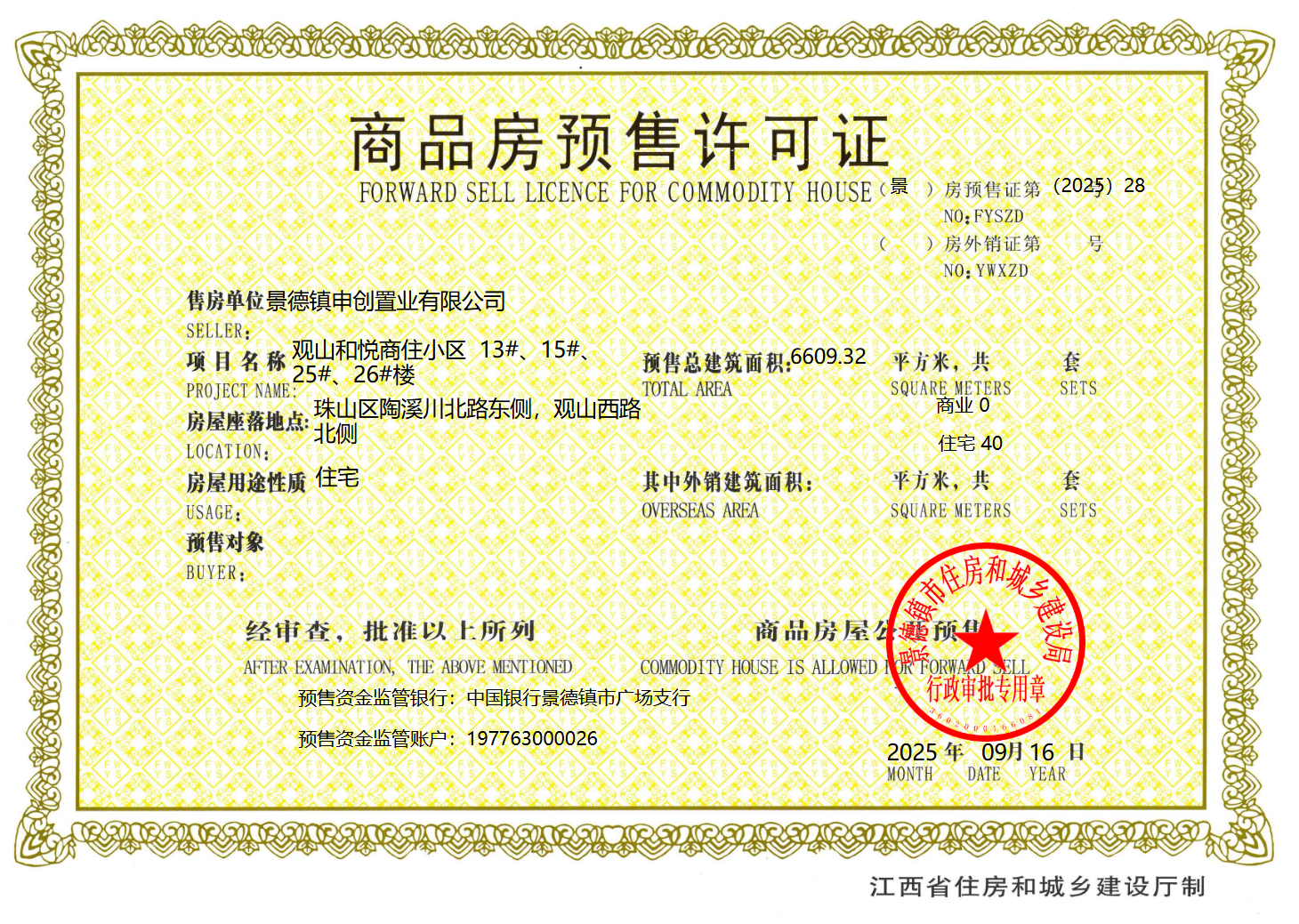 观山和悦2025年第28号预售许可